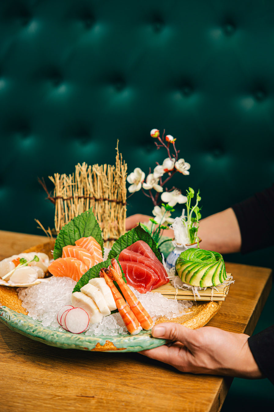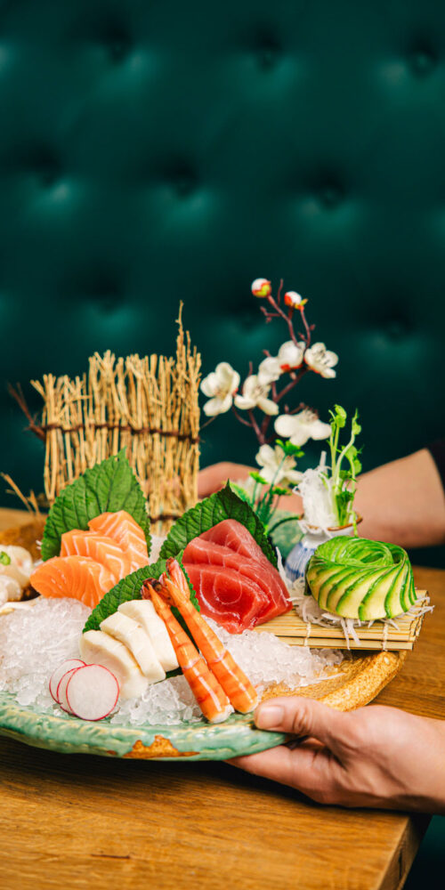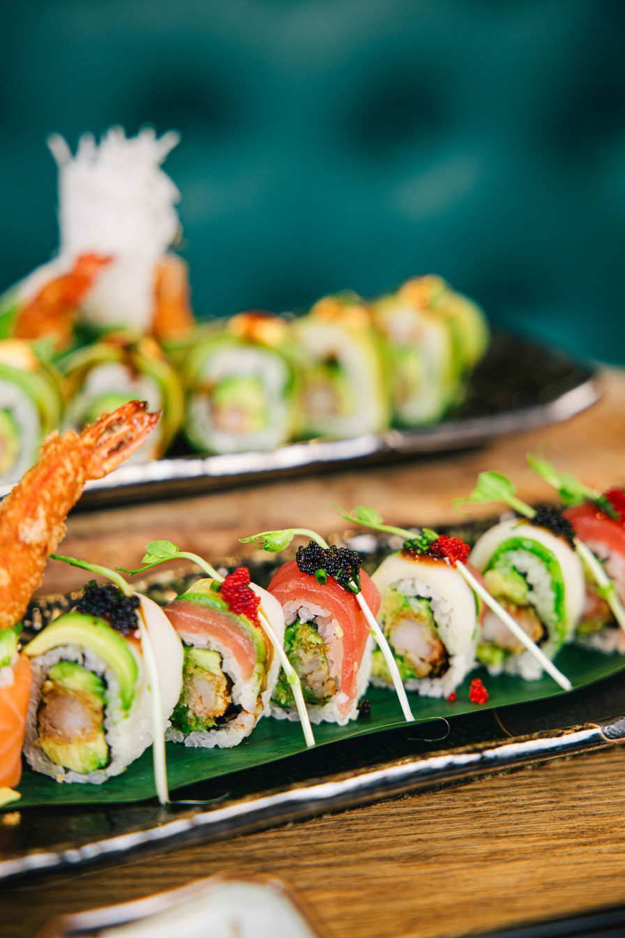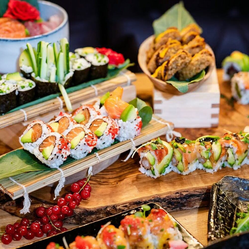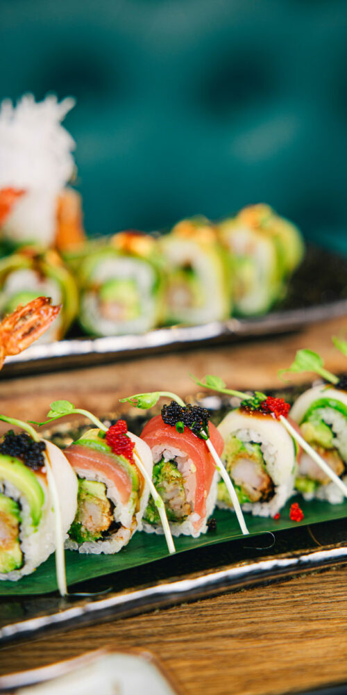 Unser engagiertes Team verwöhnt Dich mit kunstvoll arrangierten traditionellen SushiKreationen und innovativen Neuinterpretationen von Sashimi, Maki, Nigiri, Inside-Out-Rolls .