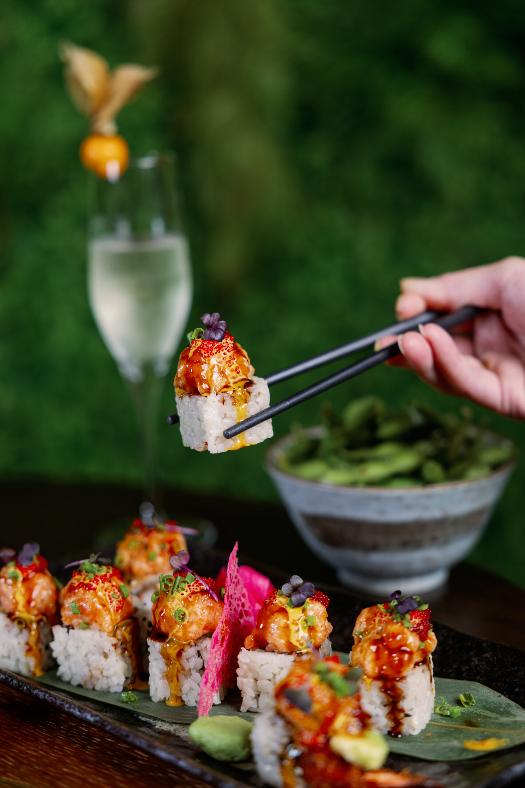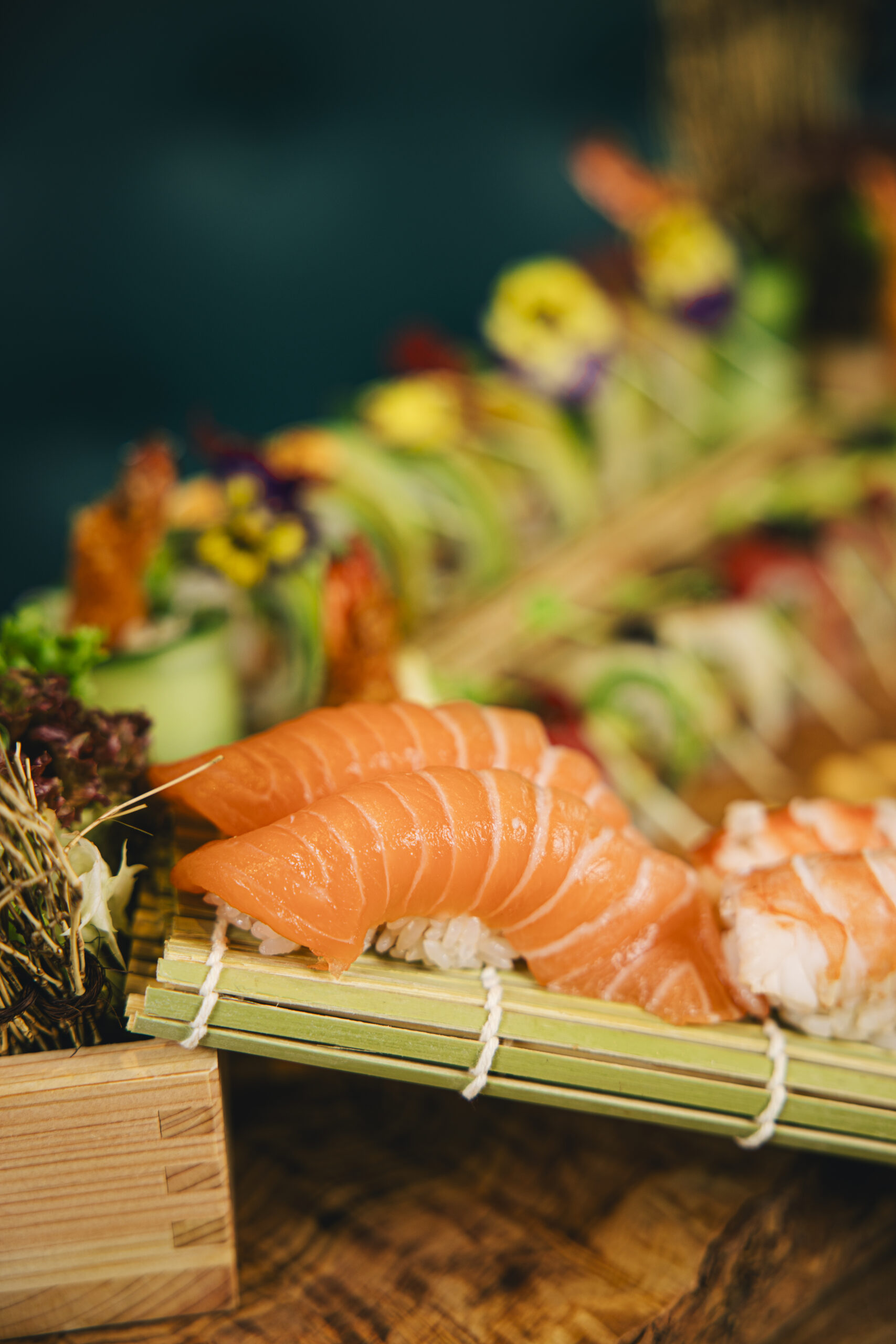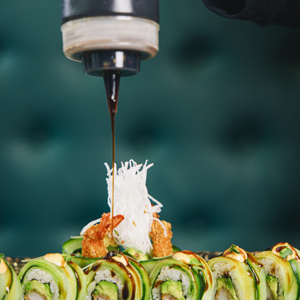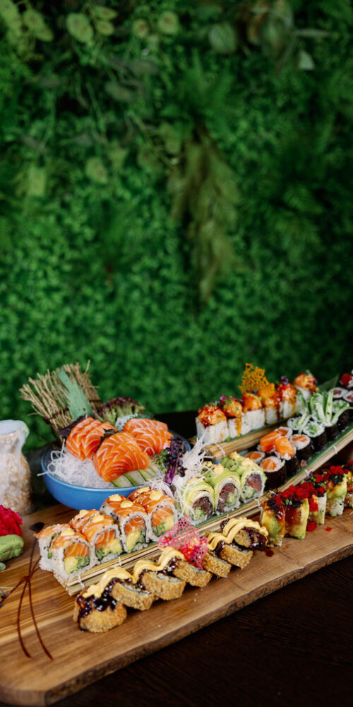 Unser engagiertes Team verwöhnt Dich mit kunstvoll arrangierten traditionellen SushiKreationen und innovativen Neuinterpretationen von Sashimi, Maki, Nigiri, Inside-Out-Rolls .
