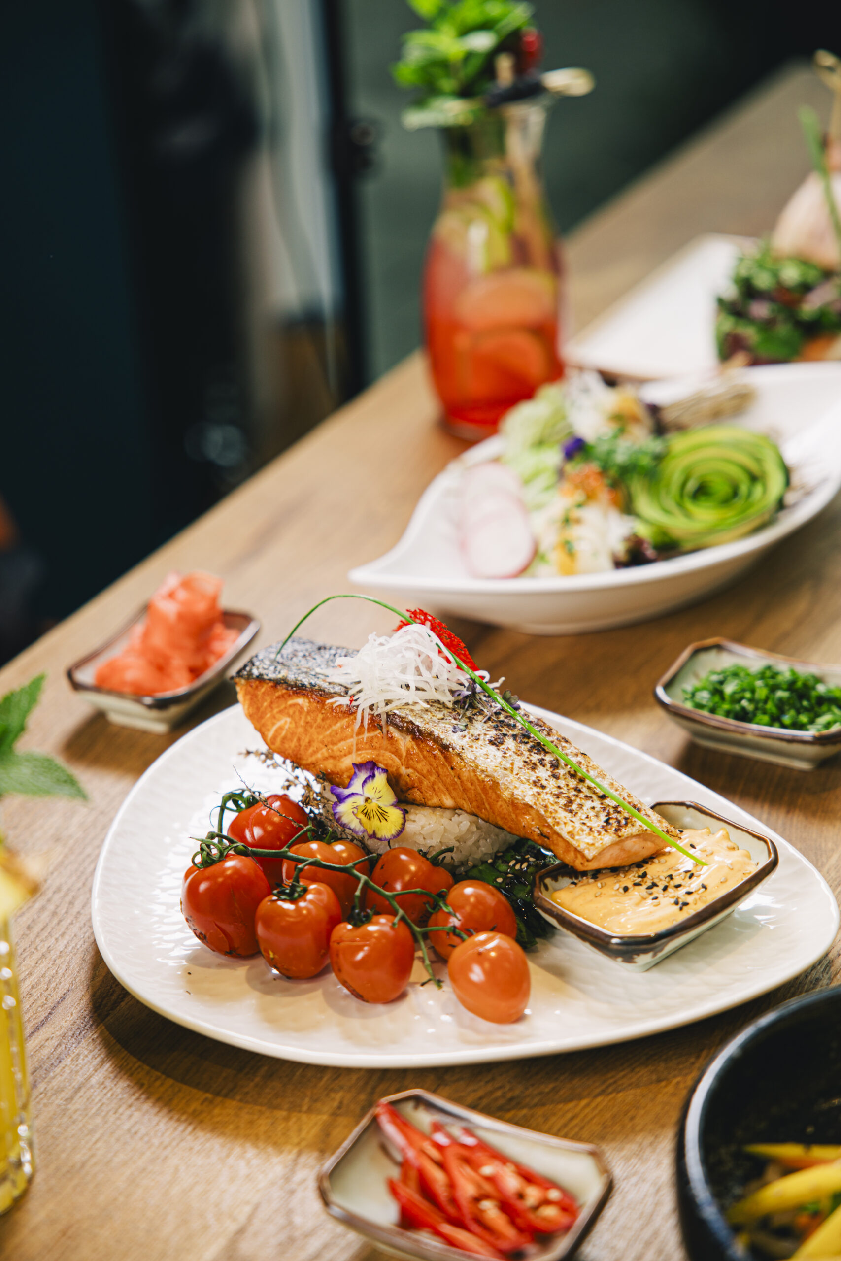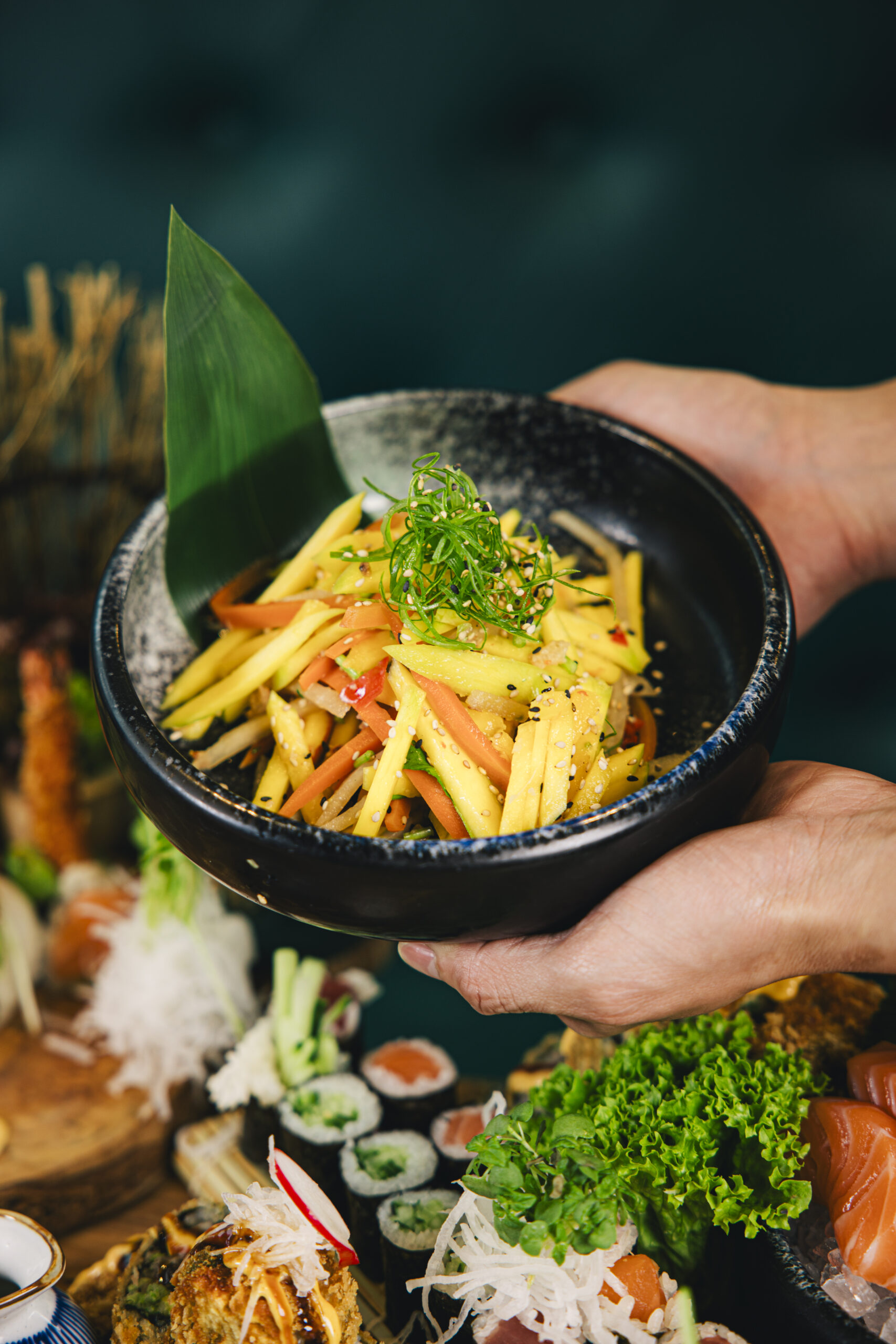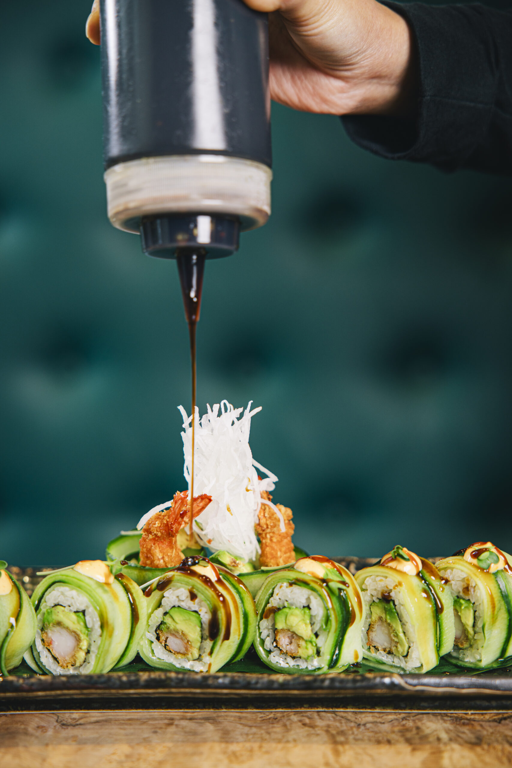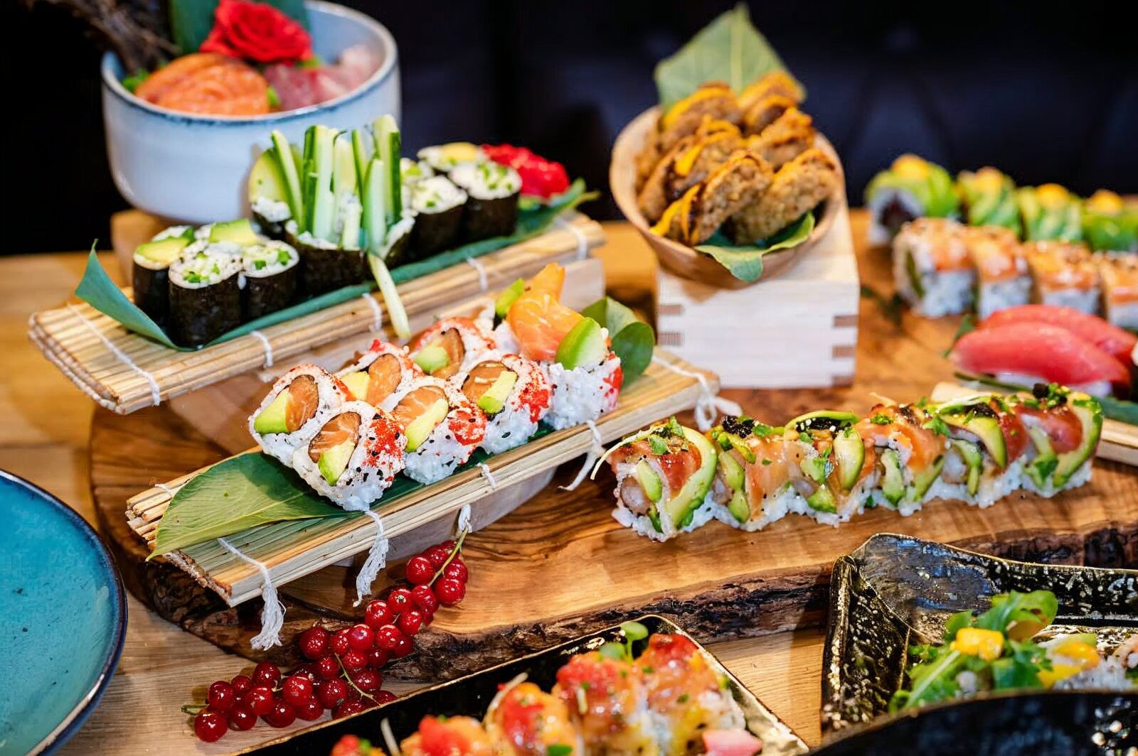Unser engagiertes Team verwöhnt Dich mit kunstvoll arrangierten traditionellen SushiKreationen und innovativen Neuinterpretationen von Sashimi, Maki, Nigiri, Inside-Out-Rolls .