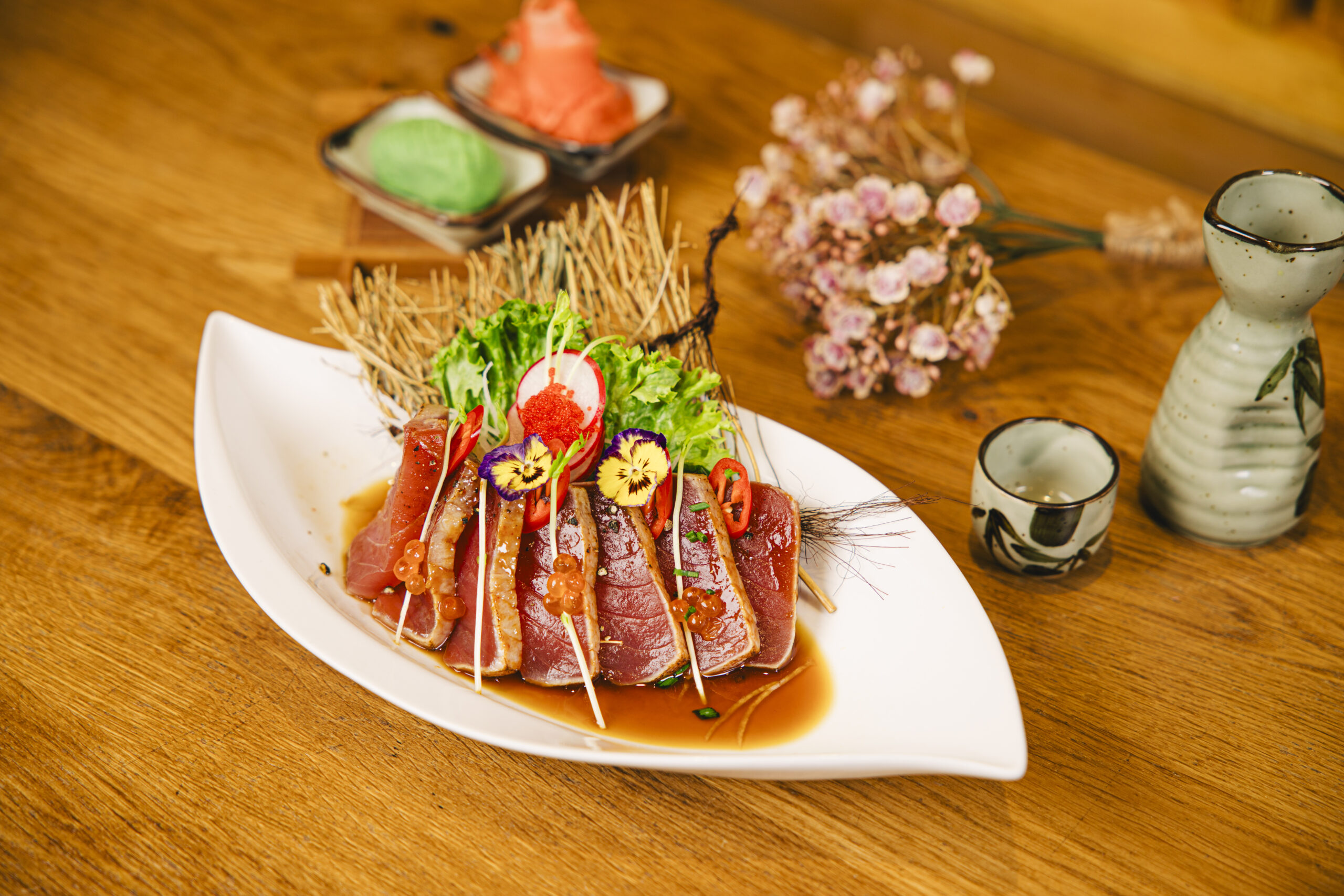 Die Verschmelzung asiatischer und europäischer Einflüsse prägt unsere moderne japanischeuropäische Kochphilosophie. Dabei setzen wir auf Innovation, ohne die Wurzeln der Tradition zu verlieren.